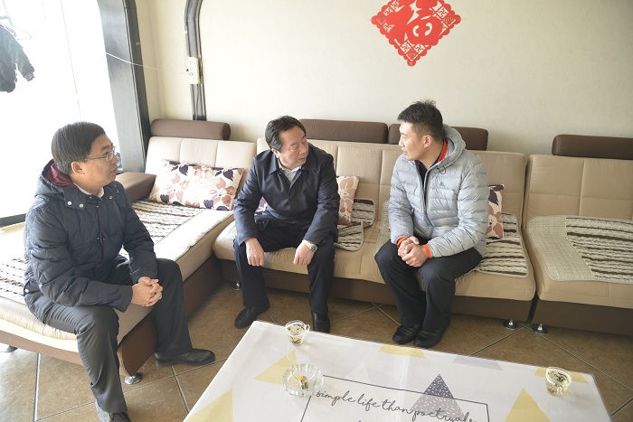 1月29日下午,自治区国资委党委书记、主任张金亮一行到公司困难党员家中走访慰问。公司党总支书记、董事长王力军陪同慰问。
