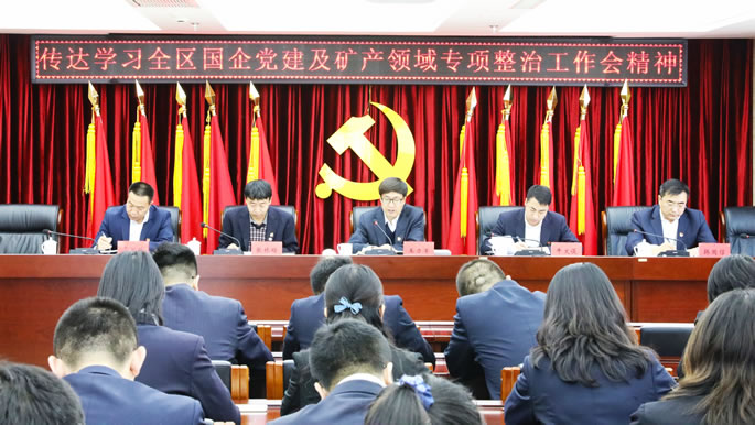 公司党总支书记、董事长王力军传达自治区直属国有企业党的建设工作座谈会精神,学习自治区党委副书记、政法委书记林少春同志的讲话。公司党总支副书记、总经理牛文俊传达国资委系统矿产资源领域突出问题专项整治工作动员部署会精神,并宣读公司《矿产资源领域突出问题专项整治工作实施方案》等文件,提出了5个方面的主要工作和4个方面的保障措施。